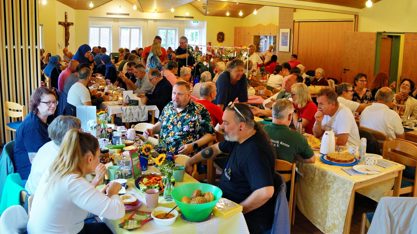 Obwohl das „Stadtteil-Pick-Nick“ vom Resser Marktplatz wegen Regen ins Gemeindezentrum der Herz-Jesu-Gemeinde verlegt wurde, folgten über 200 Bürgerinnen und Bürger der Einladung des Netzwerks für Demokratie und Vielfalt zu einem bunten und vielfältigen Treffen.