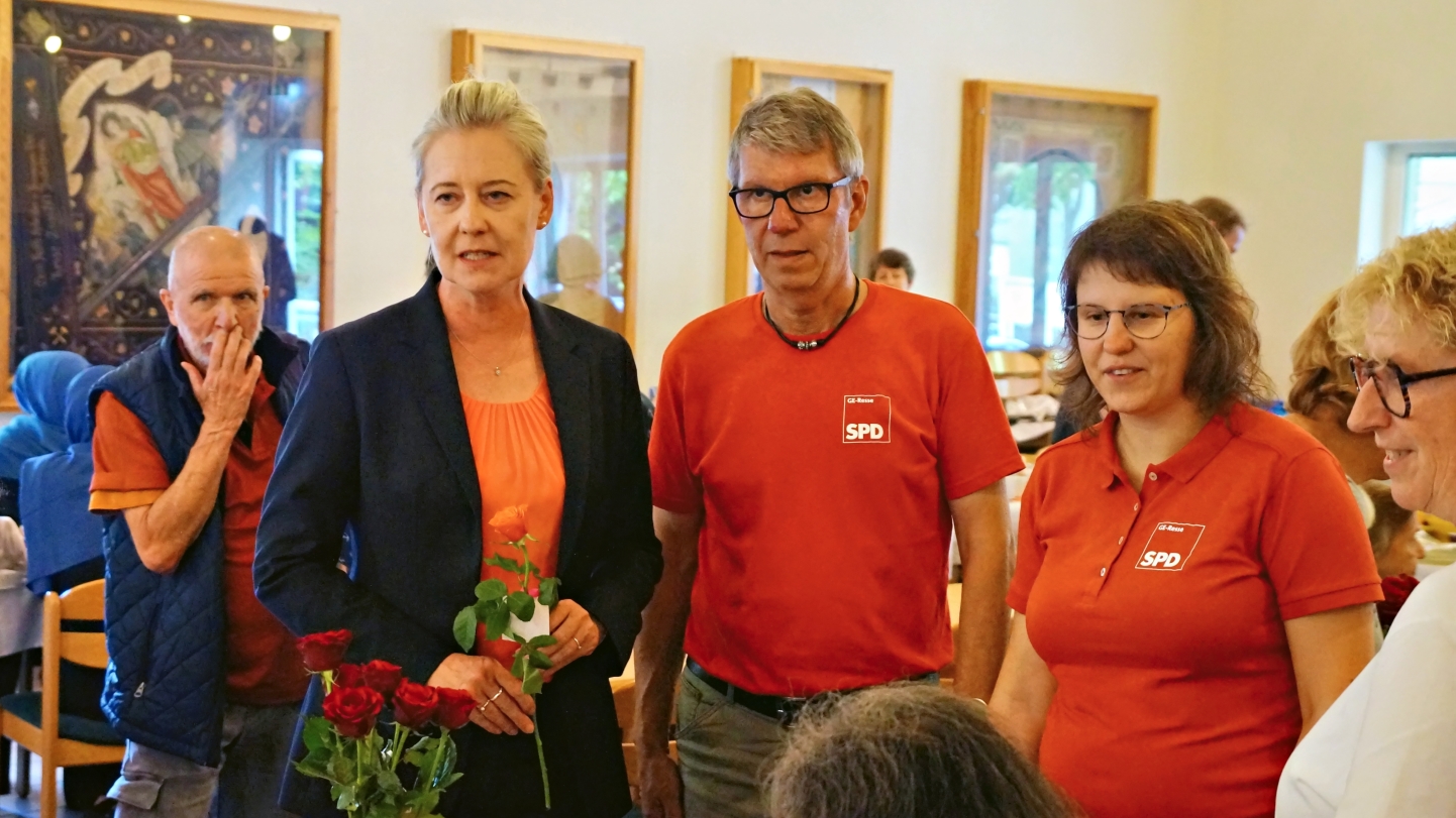 Anschließend stellten sich die Bürgermeisterkandidatinnen Andrea Henze (SPD, GRÜNE) und Laura Rose (CDU) den Fragen und Anregungen der Anwesenden.