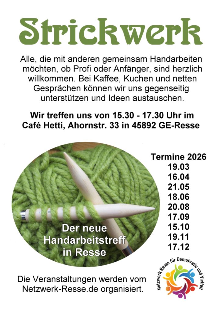 Es wurde bestätigt, dass der Weg, den das Resser Netzwerk für Demokratie und Vielfalt eingeschlagen hat, sinnvoll und nachahmenswert ist. Dabei geht es darum, die Bevölkerung aufzurufen, aktiv für Demokratie und Vielfalt einzutreten, und zwar im Freundes- und Bekanntenkreis, am Arbeitsplatz, im Verein und überall in der Öffentlichkeit, wo Hass, Hetze und Diskriminierung in Form von Bemerkungen oder Verhaltensweisen anzutreffen sind.